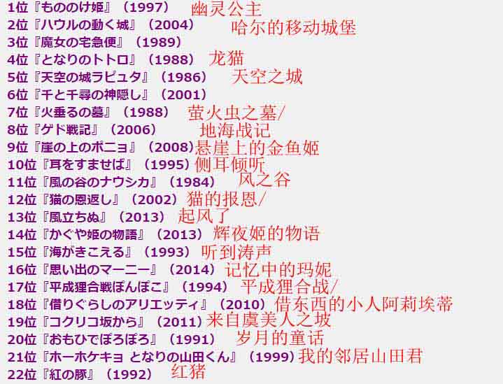 Ghibli film ranking