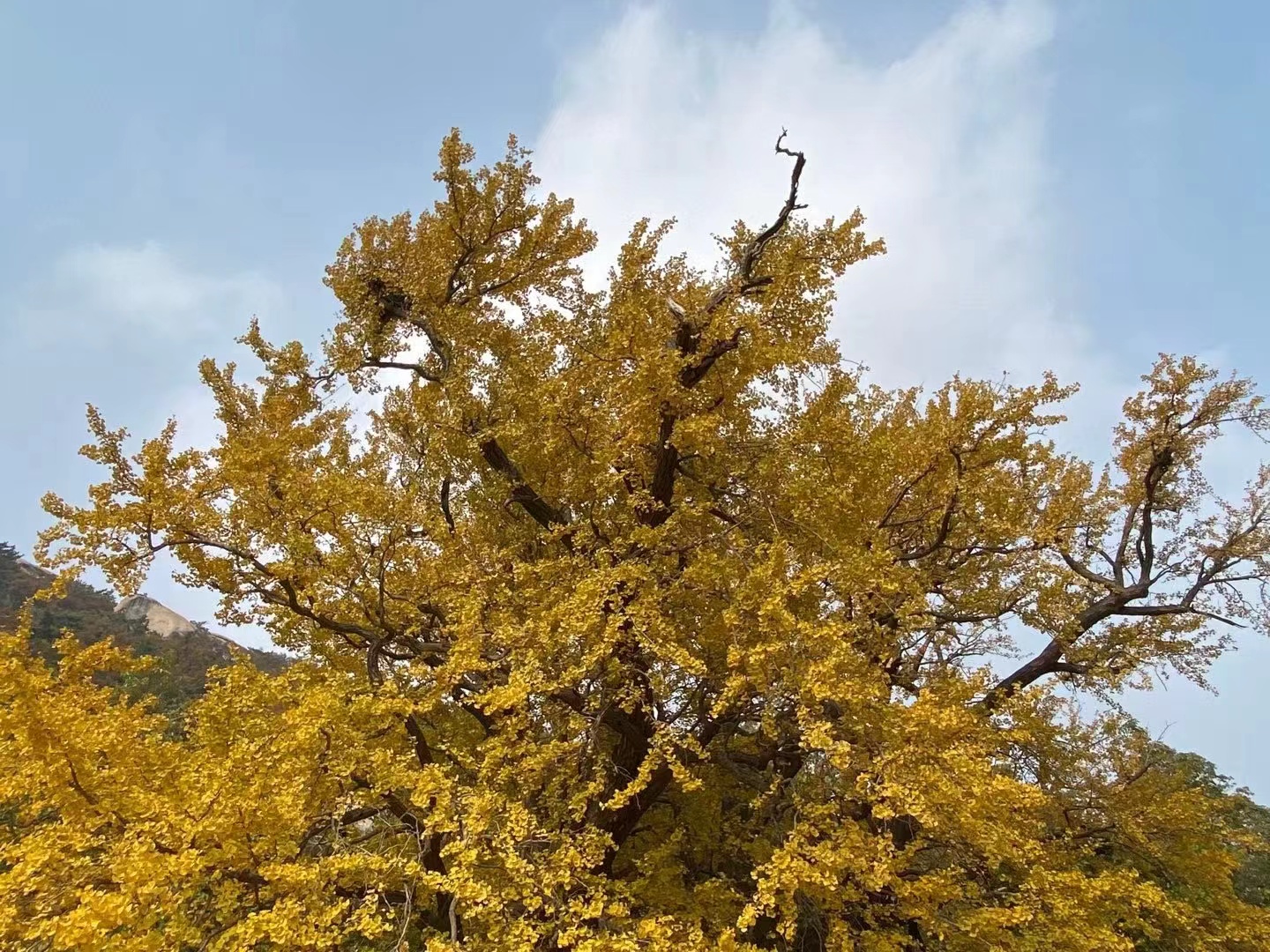 明霞洞前的银杏正是时候