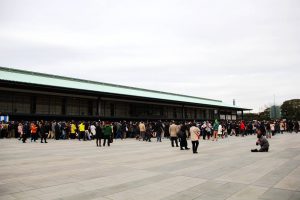 友達が旅行に来て、ちょうど天皇は新年挨拶するって。